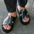 サンダルはソールが厚くて合皮で履きやすくてシンプルなものを探していました。HERMES(エルメス)も持っていますがソールが薄いので履きにくいです。サンダルは他にも5足持っています。靴は革ものが多くてサンダルも革がほとんどです。リカバリーサンダルももっています。黒はずっと着ています。トップスは去年くらいからシャツの気分で、テロテロした素材が欲しかったんです。仕事でも使えるので5枚くらい持っています。黒以外だと白やグレーも。他だとシャリ感があってストレッチが効いていたり、速乾、吸水など、着やすさを重視して購入することが多いです。