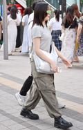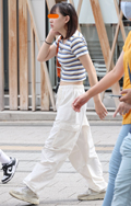 女性には白ベースのカーゴパンツも人気だ。こちらはショート丈ト...