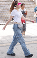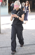ショート丈トップスにカーゴパンツ、ロングヘアがNew Jea...