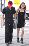 赤い髪とオールブラックコーデ、そしてネックレスもおそらくお揃...