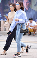 ストラップが二連になったバッグも流行中。脇の下にキュッと抱え...