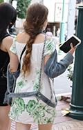 ブラトップのストラップがチェーンになったデザイン。派手なヘア...