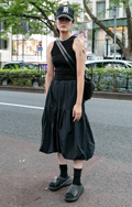 フリルや切り返しのあるドレスはあえてスポーティな素材で甘くな...