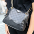 バッグは10年ぐらい前に買ったプラダです。当時小さめのバッグを探していて、本当はシャネルMATELASSE(マトラッセ)が欲しかったけど買えなくて。ヴィンテージショップでこのバッグとの巡り合わせがあって買いました。一度チェーンが切れた時に正規店で編み直してもらいました。会社はこのバッグで出勤することも。ペットボトルも入るサイズです。