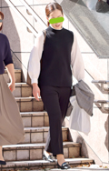 シンプルなウールのパンツにベストのベーシックなスタイルの女性...
