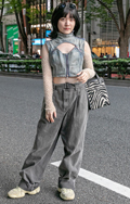 レザーベストやブラックデニムなどストリート感あるアイテムを上...