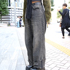 このデニムパンツは裾のダメージがかわいくて一目惚れをしました。丈が短いトップスやピチッとしたトップスと合わせることが多いです。デニムの黒は初めて買いました。黒のトップスに黒のデニムで合わせることも多いです。