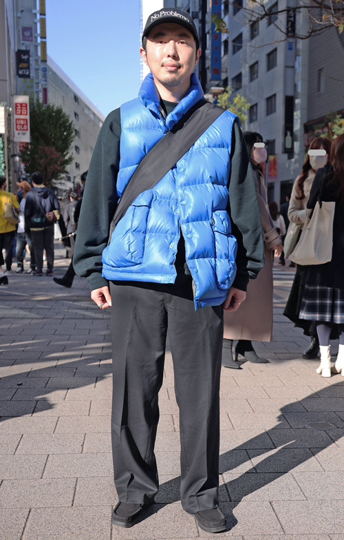 ダウンやフェザー、綿などのインサレーションで膨らみが感じられるアウターを着用する男女すべて。デザインや丈、表面の素材、色は問わない。
