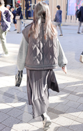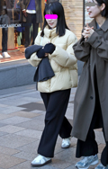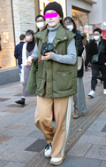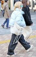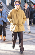 ダウンやフェザー、綿などのインサレーションで膨らみが感じられるアウターを着用する男女すべて。デザインや丈、表面の素材、色は問わない。