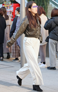 コンサバモード系にはコンパクトなライダースジャケットも見られ...