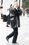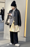 インパクトのあるレザー調のコートも散見された。今シーズンはボ...