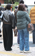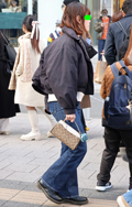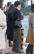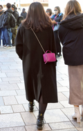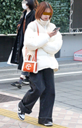 服のボリュームがアップするとバッグはコンパクトで手に持つスタ...