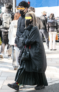 いちばん上に着用しているアウターが黒い男性・女性すべて。柄や切り返しがあっても総面積の80%以上が黒であれば含む。デザインや丈、素材は問わない。