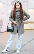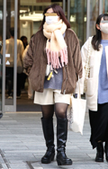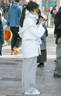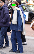 イヤーマフと白のボリュームマフラーで顔周りに季節感を取り入れ...