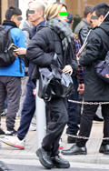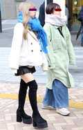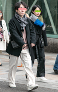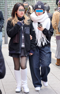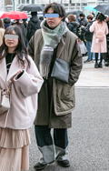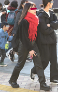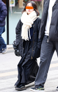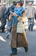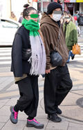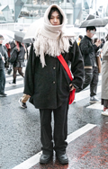 マフラーをバラクラバ風に頭に巻き付ける着こなしも散見された。...
