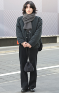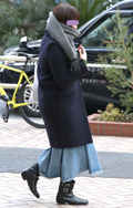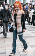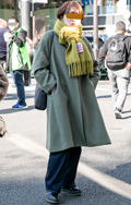 ボリュームマフラーがコーディネートのアクセントになっている。...
