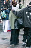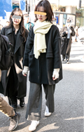 ストールは結ばず前に垂らすスタイルが今シーズンは目立つ。もう...