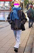 今冬急増したのが、ロングマフラーもしくはフード付きマフラーで...