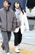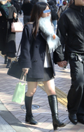 みぞれ混じりのあまりの寒さにマフラ〜で頭を覆う人も散見された...