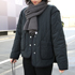 マフラーは雪が降る予定だったので温かさを重視で選びました。青とグレーのチェックの柄物しか持っていなかったので、単色でシンプルなものが欲しいと思って購入しました。ジャケットはマルジェラに行くので大人っぽくしたいと思い着ました。普段はTHE NORTH FACE(ザノースフェイス)などカジュアルめな格好が多いです。ジャケットのステッチやパイピングがお気に入り。古着っぽくてかわいいです。他に持っている黒アウターはダウンです。