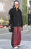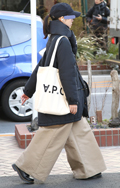 ワタリが広めで、腰から膝、裾まで身体との空間があり、余裕のあるパンツすべて。素材やデザインは問わない。