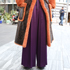 太パンツは単純にワイドで脚長を狙って。背が高く見えるのでワイドパンツを選んでいます。今日はアウターが重めなので、軽めで動きのあるものにしました。持っているロングパンツは太め、ショートパンツもボリュームがあるものが多いですが、ハイウエスト、ジャストのウエストのものを選んでいます。