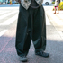普段から太いパンツが好き。高校生くらいからずっと。自分がかっこいいと思うスタイルの人が太パンツの人が多くて。あとは自分の体型にハマっているから。トレンドだからというのもあるけど自分にしっくりくるので。最近細身の時代がきているというけれど、変える気はありません。これは黒だから着回しがきくと思って購入しました。いま細いパンツはひとつも持っていません。はかない理由は体型に合わなくてシルエットが作りづらいので、気分が上がらないから。