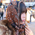 スカーフは、顔まわりが小さく見えるので巻いています。70~80年代のファッションをTik Tokで見て素敵だなと思い、その時代に流行ったスカーフ巻きを取り入れています。顔を隠したいわけではなく、むしろ顔まわりにアイテムがあると顔に視線が向く感じがして良いかなと思って。上にボリュームが出る分、首から下のコーディネートはシュッとしたシルエットになるように意識しています。また前髪が抑えられて目にかかったり、影によって顔が暗く見えてしまわないようにメイクも明るめの色を使ったりしてバランスに気をつけています。ファーアイテムは、周りの友人がファーアイテムを取り入れていて可愛いなと思ったので自分もファーアイテムを購入しました。ボア素材よりもファー素材の方が存在感があるし、高級な雰囲気になり素敵だなと思います。今日着ているような茶色系のファージャケットの時はザ・古着というイメージでコーディネートを組みます。他にも黒のファーアイテムを持っていますが、それはグランジっぽく肌見せしたりしてコーデに取り入れています。