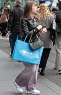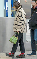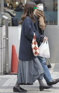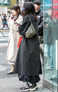 ショルダーバッグと思われるタイプを短く結んで手持ちしていた女...