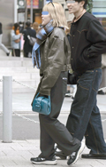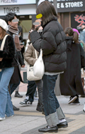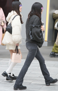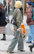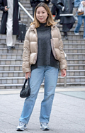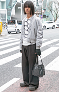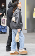 お下がりのようなコーチのハンドバッグにワイドジーンズとNIK...