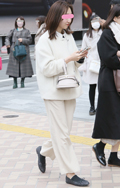 白のレザー小物使いがコンサバティブでクリーンな印象。ワンハン...