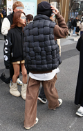 パデッドアウターの裾を絞ってショート丈見えにしたスタイルも多...