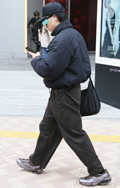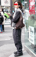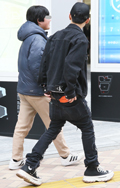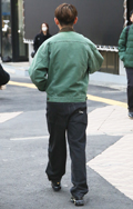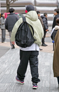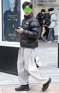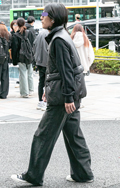 機能性のある太パンツ×タイトなナイロンジャケットでスポーツ/...
