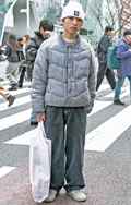 裾を絞ったパデッドアウターでメリハリをつけたコーディネートが...