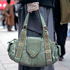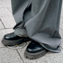 ボリュームのある革靴を探していて。AMBUSH(アンブッシュ)のパドルブーツは持っていてボリュームはあるけどかっちりしたものも欲しくて、この靴を買いました。ネットで探していて候補がいろいろあったんですけど、RAF SIMONS(ラフシモンズ)のRUNNER SOLARIS−21の黒が売り切れちゃって。残ったこの革靴が運命だなと。あんまり履いている人がいないのが購入の決め手でした。合わせ方としては、裾を貯めるスタイリングが多いです。今後はショーツとかと合わせていきたいです。バッグが欲しくて、これはBalenciaga(バレンシアガ)みたいでいいなと思いました。原宿とかあるいていて、持っている人が結構多くて、自分も欲しくなりました。色が好きです。いろんな服と合わせやすいし、スタッズもついていてユニークで好き。休みの日とかになんでも合わせられるので頻繁に使っています。