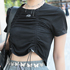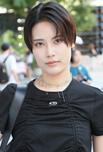 A 短い丈のTシャツ+ハイウエストの組み合わせが好きでよくこのスタイルをしています。その中で気に入って買いました。流行っているなとは思っています。いまのPAGEBOYはストリートトレンドが多いです。ストリートスタイルが好き。パンツはよくはくし、すごく気に入っています。何にでも合わせられるシルエットが好きです。Tシャツのシャーリングは調節が効きます。他に、白で横シャーリングのものを持っています。