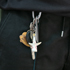 ギャザーパンツは黒地にターコイズブルーのステッチがあしらわれたデザインが気に入って購入しました。後ろにもデザインが入っていて変化のあるシルエットが好みです。ギャザーというと女性らしいイメージを持っていたんですけれど、ファッションでもジェンダーレスの流れがあるので男性のアイテムとしても取り入れやすくなったなと感じています。他にも縦にドローコードが入った、丈を調節できるデザインのベストを持っています。チャームは、バッグにチャームがつけるのがかわいいなと直感で思ったので。ストラップは家にあったものの中から「これ案外使えるかも」というものを選びました。わざわざ付けるために新しいチャームを買うというよりは、もともと持っていた物の中から好きなアイテムを感覚でピックアップした形です。チャームだけでなく、缶バッジなども普段からバックにつけてデコレーションしています。美術館巡りなどが好きなので、そういう場所で購入したストラップやバッジを積極的にファッションに取り入れています。