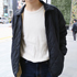 A 今日の帽子は、ふたつ折りになったタイプのニット帽が似合わず、自分の頭に沿うようなデザインのものが好きで購入しました。「自分に似合う」が一番重要な基準です。小さい時から親の影響でキャップをたくさん持っていて、自分にしっくりくる形はこれだと決まっています。コートとかではなくてジャケットとかのハズしとしてキャップを使っています。今日は寒いし自転車なので被ってきました。