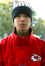 A 帽子はUGG(アグ)のショップで一目惚れしました。ビーニーはよく着用する方で8つくらい持っています。うち5つは黒ビーニー。今日UGGの黒ビーニーにしたのはアウターと靴の黒地に白字がマッチしているから。今日のアウトフィットがダボっとしたシルエットなので、バランスをとってビーニーで顔まわりはタイトにしたいと思いました。きれいめのアウトフィットでもビーニーで崩したりする着方もよくします。ヘアセットもせず楽なのにキマるのもいいです。