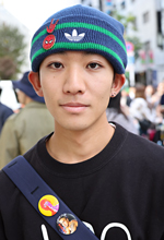このビーニーはカラーがよくて買いました。他に持っているのはCarhartt(カーハート)とか、ロゴのついた折り返したニット帽です。ビーニーをかぶる理由は、髪をセットしなくていいので楽だからです。いつもの服装にビーニーが合うので。キャップは似合わない…。あとニットキャップだとあったかいというのも選ぶ理由です。ビーニーはラッパーっぽい印象です。エミネムが結構好きで、エミネムの映画を見て高3くらいからかぶり始めました。最初に買ったのはGUのもので、バッジとかつけてみようと思って買いました。キャップもあるけどあまりかぶりません。ニットキャップはいろんなものを欲しいと思っています。ARC'TERYX(アークテリクス)も欲しいです。アークみたいな薄いビーニーは渋い人がかぶっているイメージです。今日は寒いのと、服装がシンプルなので変化をつけようと思ってニットキャップをかぶってきました。