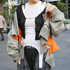 MA-1はかっこいいものが多いけれど、これはかわいさもあってなんでも合わせられそうで買おうと思いました。今日は着る予定がなかったんですけれど、最近着ていないアイテムだったので主人に勧められて。ハイトーンヘアにしたのはこの7年くらい。シルバーが多いんですけど、2~3ヶ月に1回、いままでやったことのない色にしています。次はシルバーから黒の逆ブリーチにする予定です。