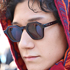 このマフラーは、イギリスの留学生の友だちとローマに行った時蚤の市で買いました。帽子の上にマフラーをつけている人を見て参考にしました。耳が冷たい時に役立つし、差し色にもなります。