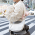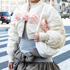 このワンハンドルバッグは買ったときに白地に赤柄のPOPPYのコートを持っていて、合わせるように買いました。うるさいバッグしかなかったので(笑)、形がシンプルなものを買ったんですけれど、案外入るところが気に入っています。トート、リュックはカジュアルすぎるので基本的に持たないです。斜めがけは洋服が隠れてしまうのでワンハンドル、手で持つよりもバランスがいいので肩からかけていました。コートが白地だったので白い色を選びました。クラシカルなものが好きで、四角にしないのは丸みがあって優しいからです。