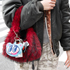 ジャケットは、冬に向けてモコモコのアイテムが欲しくて買いました。ふわふわしたアイテムは全体的に気になっていてアウターやビーニーも買いました。ニットは甘くなりすぎてしまってキャラじゃないので小物からファーアイテムを攻めているところです。赤にもハマっていて冬は色が暗くなりがちなのでよく使っています。横長バッグはSHEIN(シーイン)で買ったので安いし失敗してもいいやと思って派手なデザインのものを選びました。髪も赤にしたり赤のブーツと赤のバッグを合わせたり、黒いコートに差し色として使ったり…今日は原宿に行くしパンツやブーツもコテコテなのでバッグも派手に!他には同じような形のヴィトン、チェック、ヒョウ柄のバッグも持っています。ハイブランドには興味がないので古着に合わせやすいものをプチプラで買います。最近は赤・柄×柄のコーディネートが好きなのでよく今日のバッグを使っています。