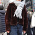このアウターは2年前に親からおさがりとしてもらいました。それからよく着ています。茶色はなんでも合わせやすいので気に入っています。差し色に黄色や青色を合わせたり。これと黒のロングコートがメインのアウター。どちらも他の服との合わせやすさがポイントです。このアウターは本物の毛で暖かいので今日は選びました。ファーは流行りを意識したわけではなく好きだから着ています。