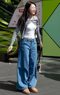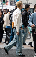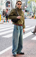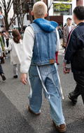 デニム素材のパンツのうち、洗濯や日焼け、あるいはウォッシュド加工などによって褪色したブルーになったものすべて。丈や太さ、デザインは問わない。