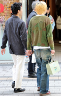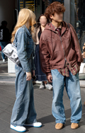 男女色落ちブルージーンズ