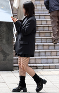 網タイツに黒のレッグウォーマーでアクセントをプラス。グラマラ...