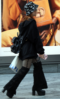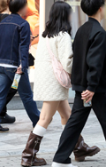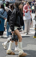 こちらの女性はシャーリング使いがいまっぽいレッグウォーマーで...
