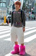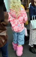 モンスターっぽいファーレッグカバー/ブーツをポップなピンクで...